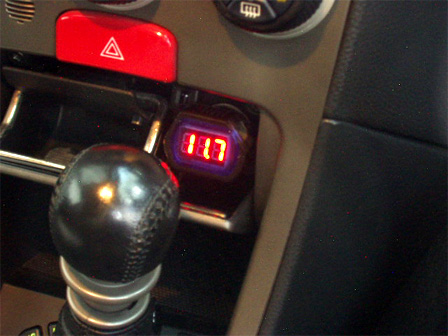 これは諦めて、灰皿部分に電圧計を設置しようかと思ってます。すぐチェックできると便利だし、タバコ吸わないし。