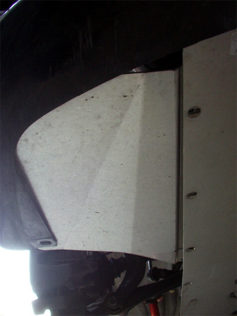 まずはジャッキアップしてウマをかけ、サイドスカートの固定ネジを前から三箇所ほど取り外しました。