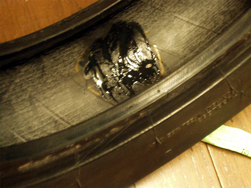 ホイールから外して、破綻部を確認。裂け目が大きくなってしまっています。