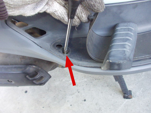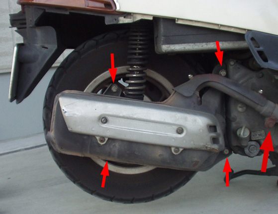 確認のため、タイヤ交換作業の要領でサイドプロテクターとマフラーを外してみると