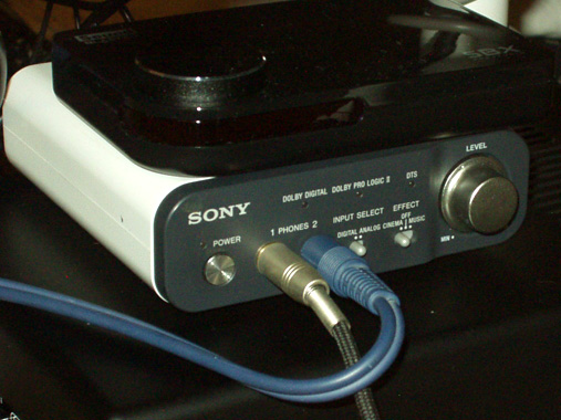 サラウンドヘッドファンアンプSONY MDR-DS1000から音声を入力していましたが、このままでは男性のセリフなども振動変換されて、クッションが終始震えっぱなしになってしまいます。