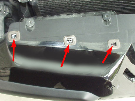 ボンネットロック機構のカバーは簡単に外れますが、左右のフィンは、矢印部分の差し込みに固く嵌っています。