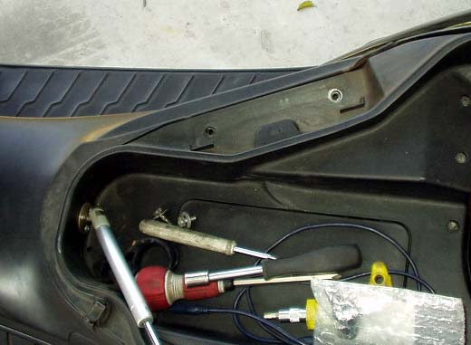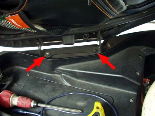 サイドスタンドスイッチにアクセスするには、シートを外す必要があります。