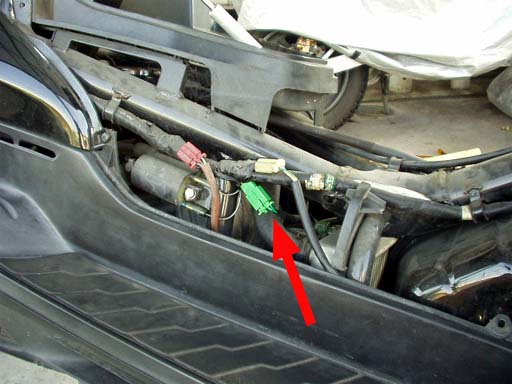 緑のカプラがサイドスタンドスイッチにつながっています。この部分を短絡させ