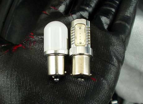 右:7.5W LED それなりに明るくて消費電力も少ないのですが、テール / ストップ明度差はやや少ないようです。