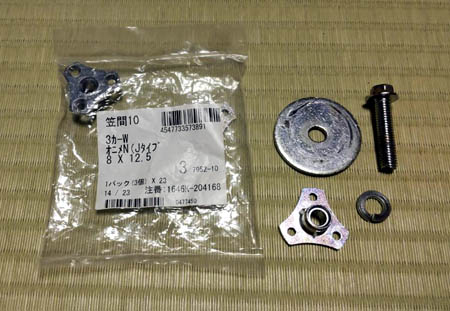 取り出しました。固定バネを留める金具が外れていました。これをボルトを使って固定します。