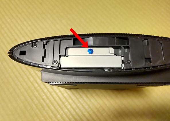 青の固定ネジを外して手前に引っ張るとHDDが取り出せます。
