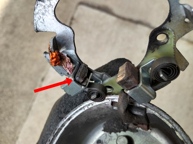 消耗したブラシが欠けてしまったことで、急に始動不能になってしまったようです。
