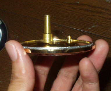 左は以前の交換で取り外した金属台座。七宝焼きエンブレムをこれに貼り付けて使用します。
