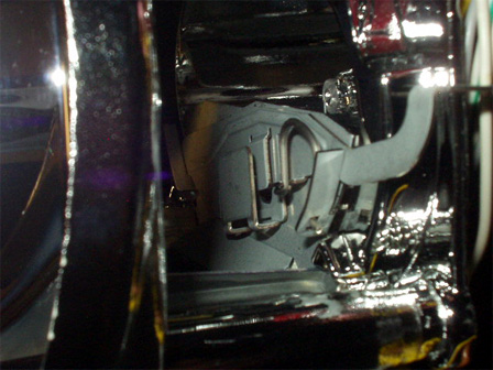 細工用スパチュラで削り落とし、ペンチでつまんで千切ります。筆はリフレクタのホコリを払うのに使いました。