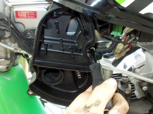 エアフィルターケースもストックしていた良品と交換。フィルターを抑えるパンチ板がある状態に戻しました。