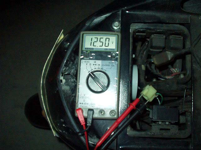 ヒューズに問題はなく、ロービームのコネクタ電圧を見ると問題なし。ただの玉切れでした。