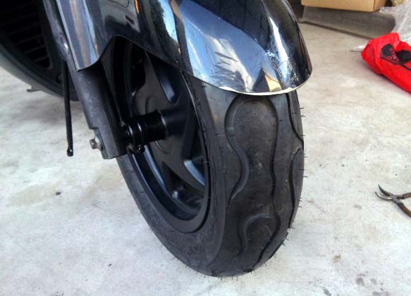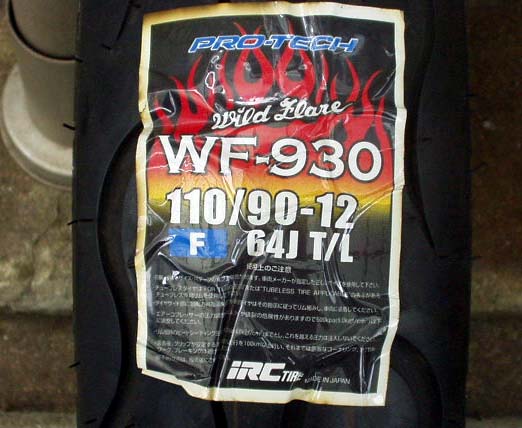 タイヤも併せて交換します。IRC WF-930 WILD FLARE ファイアーパターンのタイヤです。