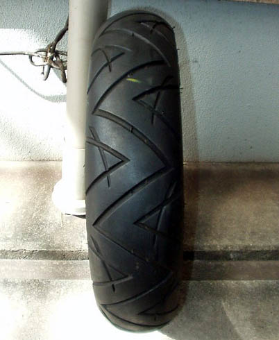 交換前使用はIRCのMB99 100/90-12 3458km走行でスリップサインまで摩耗。