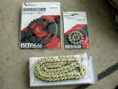 今回リアタイヤ交換に合わせて、前後のスプロケットとドライブチェーンの交換を行いました。