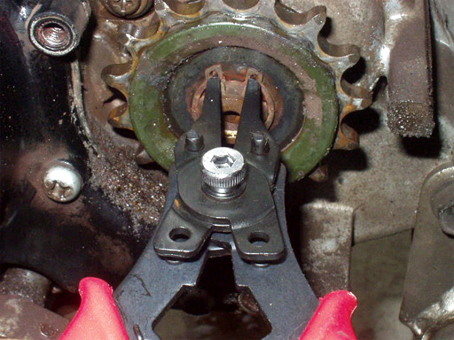 サークリッププライヤーを使ってドライブスプロケット取り外し。