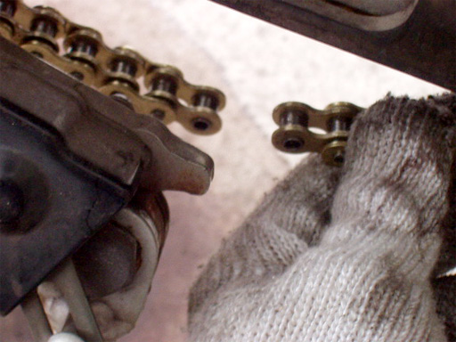 チェーンクリップ着脱にチェーンプライヤーを使用。