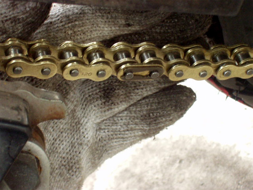前回交換から実に10年ぶり、KSR110は長らく眠らせていた時期もあったのですが、そんなに前とは思いもしませんでした。チェーンはカットして伸びに対応していました。