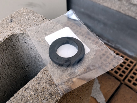 切り出したステンレスメッシュを、仮止め溶着した割れにあてがい