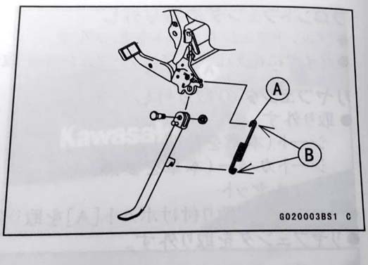 かなり強いバネなので、スタンドを上げて縮んだ状態で引っ張って取り外し。