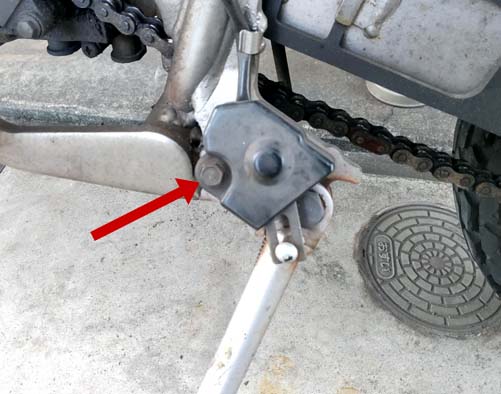 サイドスタンドセンサースイッチカバーを固定するボルトを外し、樹脂のはめ込みを抜きます。