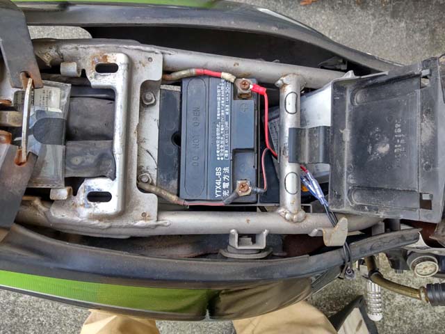 バッテリーに直接取り付け、余ったコードはまとめて小物入れスペースに仕舞いました。