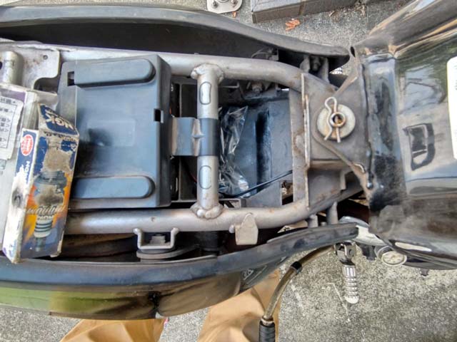 排気管に触れないようもともとのワイヤーハーネスに添わせてシート下に引き出しました。