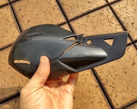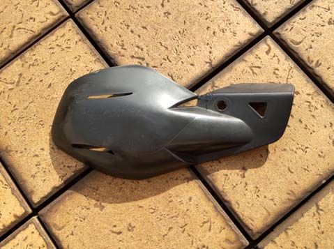 フロントタイヤの交換作業中に車体が倒れてしまいハンドガードが割れてしまいました。