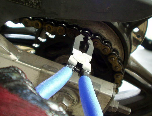 チェーンクリップ着脱にチェーンプライヤーを使用。