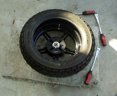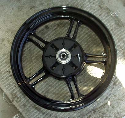 KSR110のホイールを、外装変更後の純正アルミホイールに交換しました。