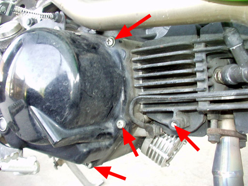取付部位はこちら。KLX110純正エンジンガードと取付部位が重複するため