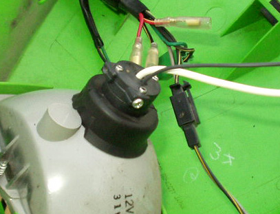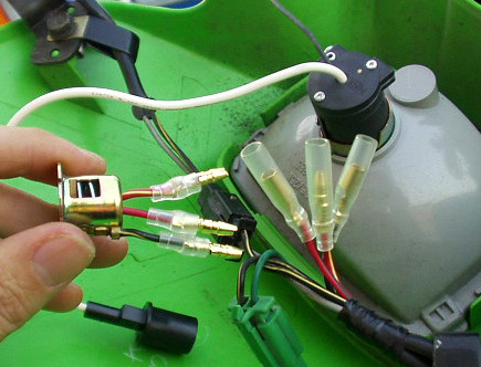 ライトに向かう電源コードを切断して、キットに付属するギボシ端子を取り付けます。