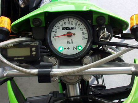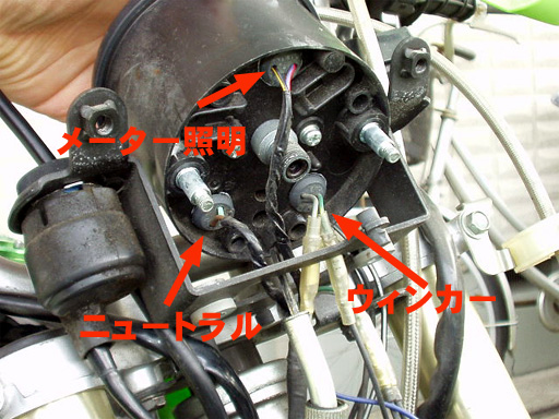 メーター内の ニュートラル/ウィンカー インジケーターは車用の安価なものを使用しています。