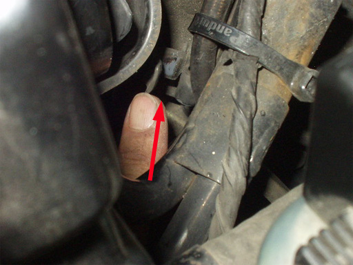 車体左側のグロメットを外し、マイナスドライバーで招請します。