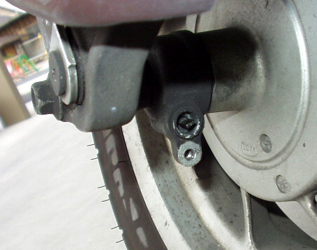 右:フロントフォーク部のクランプ