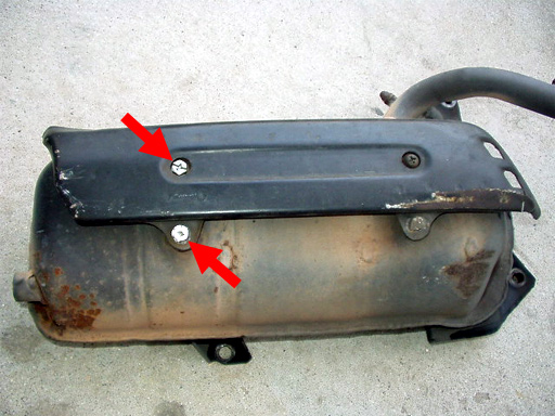 マフラーの遮熱板を止めるネジが脱落して振動音を出していましたので、しっかりと留めました。