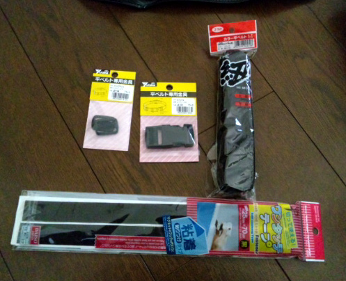 ホームセンターなどで、固定用のベルトとバックル、マジックテープなどを購入、固定ベルトを取り付けました。