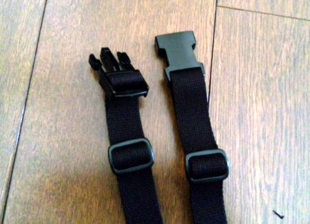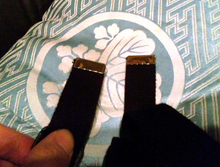 ベルトを胴回りより余裕を持たせて切り出し、それぞれの端にバックルを固定。