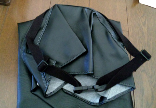 厚手の生地で防風効果は高そうです。腰の部分にバネが仕込まれていて、その弾性で体に固定して使用します。