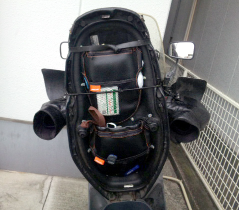 スクーターのシート裏側に取り付けて、積載スペースを作り出すものです。