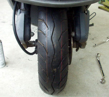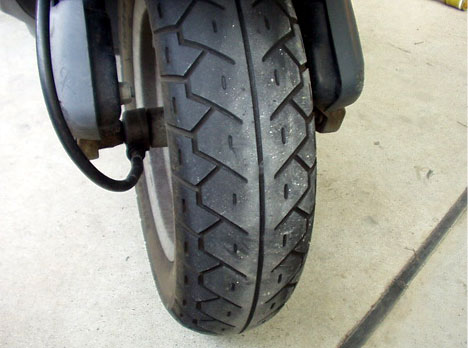前輪・後輪ともやや古いタイヤではありますが、溝は十分残った国産タイヤになりました。