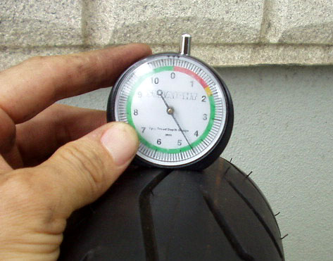 残りの溝は1mm強になっていました。2ヵ月半、走行距離3565kmにて約2mm磨耗。