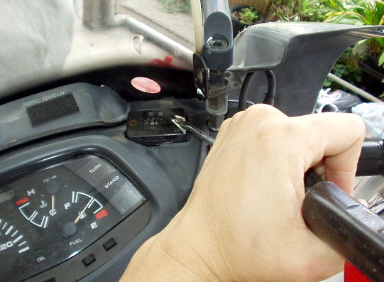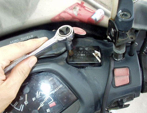 今度はヒューズ切れを疑い、ハンドルカウル内部を確認することに。