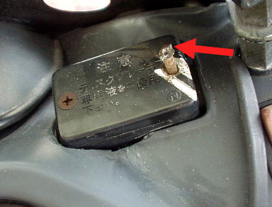 早速作業開始したのですが、横着してブレーキマスターシリンダーの蓋を止める皿ネジを潰してしまいました。