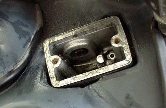 矢印部分の切り欠きにバルブを押さえる金具が引っ掛けられていますので