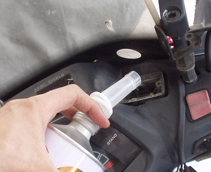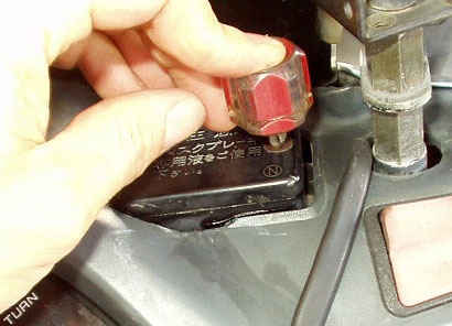 マスターシリンダー内のフルードがなくなると、ブレーキホース内に空気が入ってしまうため、空にならないよう気をつけて追加で注ぎます。