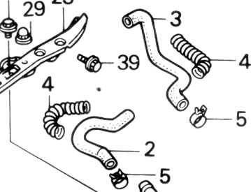今度は冷却ホースの交換です。それぞれのホースバンド・クリップを緩めて取り外し。