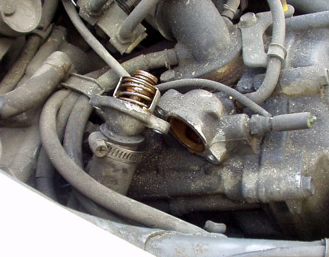 外したサーモスタットは27年の経年のためか、半開きで固着していました。
