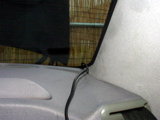 ドライブレコーダー本体に向かうコードをキャビンの中に導きます。