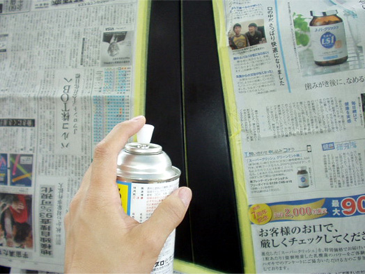 まず定着剤を全体に軽く吹いて、塗料の足がかりを作ります。